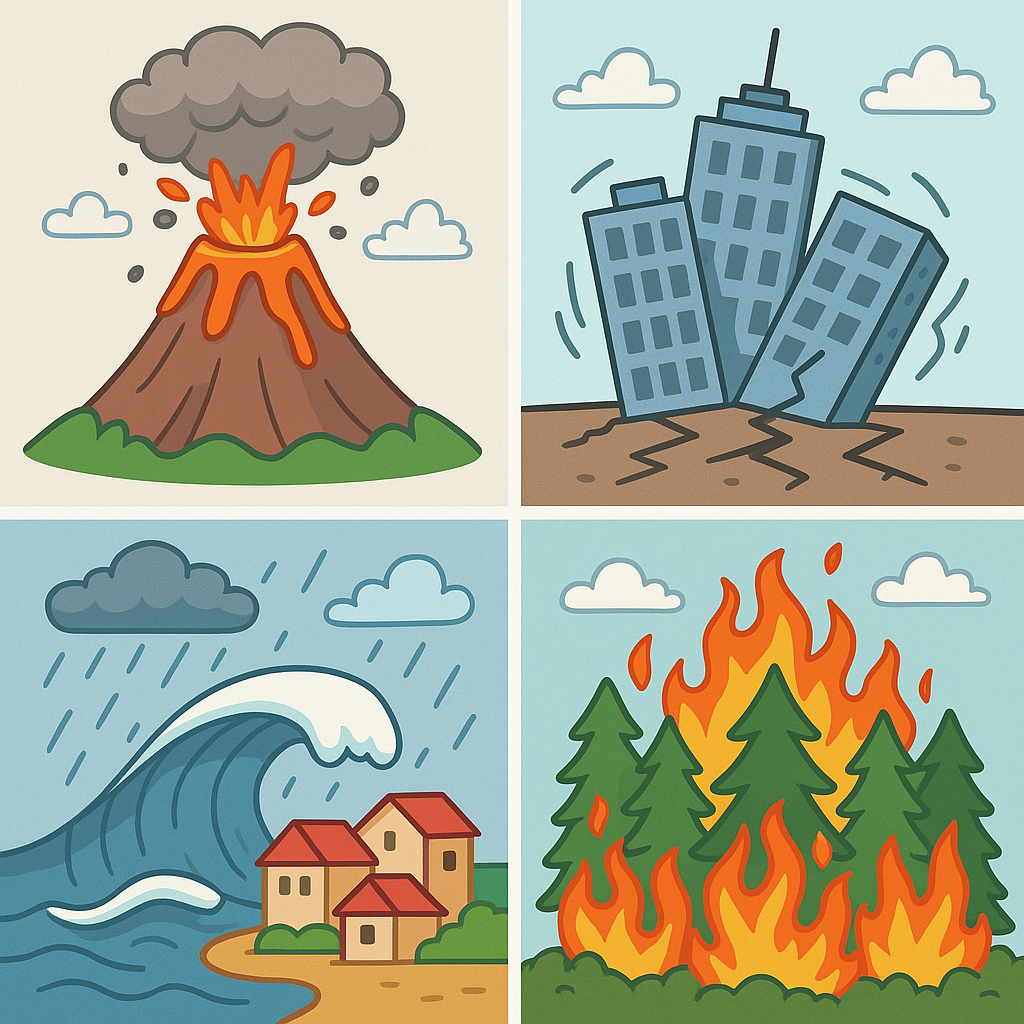 Natural hazards often result in disasters that cause loss of life (and injuries), damage to the built environment, and severe disruption to human activities.